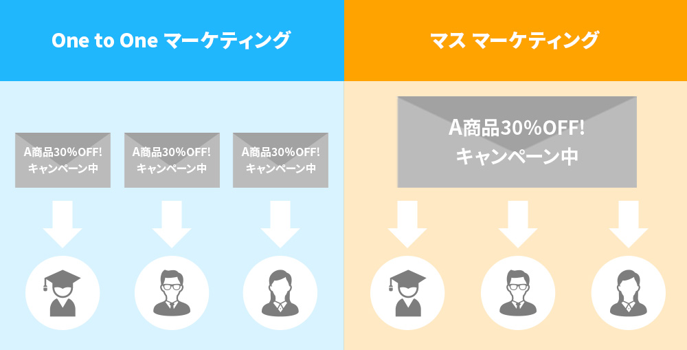 「その人が欲しい情報(その人のための情報)を、その人が欲しいタイミングで提供する」という考え方、手法がOne to Oneマーケティングです。